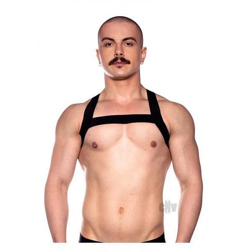The sports harness is a well designed accessory to draw attention to the shoulders and accent the natural shape and bulk of the arms. For the ultimate jock look.