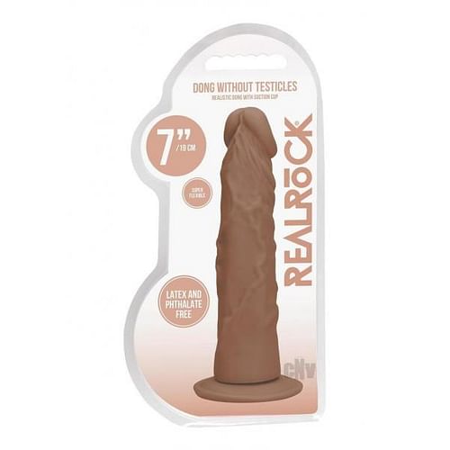 Realrock 7 inches Dong Tan Medium Skin Tone without Testicles from Shots Toys. Enjoy the Skin of velvet soft, life like skin with this incredibly realistic dildo. Meticulously designed with a pronounced head, bulging veins, and no hanging balls. The super life like shapes, textures, and colors of this dong truly look and feel like the real thing! Made from Phthalate free Skin Thermoplastic Elastomers TPE, this squishy material mimics the softness of real skin and is completely body safe. This beautifully crafted dildo is made by injection molding in order to eliminate smell and defects and at the same time increase its thermo stability and durability. The ultra strong suction cup sticks to nearly any clean, smooth or flat surface. The suction cup also doubles as a harness compatible base that remains snug in its place even when the action gets hot! Details: dimensions package 5.91 inches by 2.8 inches by 10.63 inches. Weight package 8.29 ounces. Product dimensions 1.93 inches by 1.93 inches by 9.45 inches. Product diameter 1.38 inches. Insertable length 5.31 inches. *Circle on the right side of the image Renewed = Means New, Improved Packaging. Shots Toys – Realrock. 2022.