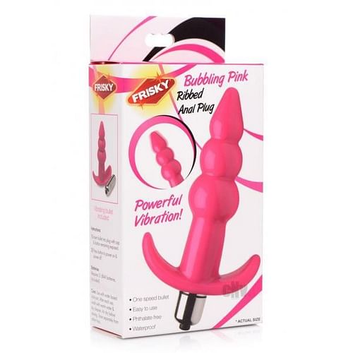The blissful bubbles of this buzzing butt plug will excite both an anal amateur and a booty boss! A tapered tip coupled with the sleek material allow the 3 bulbs to slide in comfortably, while the narrow base is shaped perfectly to fit between your cheeks. A one speed bullet is included that can be inserted at the bottom of the plug. With the simple push of a button you can fill your hole with vibrating invigoration. It is even waterproof to allow for wet, hot fun in the shower or jacuzzi! This firm, but flexible butt plug is phthalate free and compatible with silicone and water based lubricants. Clean with mild soap or a toy cleaner.