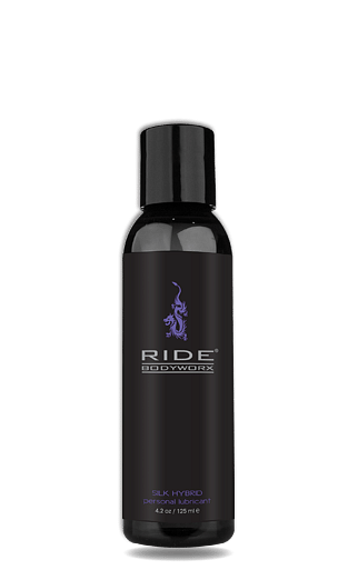 Want the best of both worlds? Ride Silk Hybrid provides just that, infusing 12% silicone and cream emollients into a water based formula. Silk Hybrid lasts longer than a water based lubricant, without the difficult clean up of a silicone. Ride Silk Hybrid is a luxurious hybrid lubricant, formulated with cream emollients and a 12% silicone blend. This Silk Hybrid personal lubricant is water based, with just enough silicone infused to give you the best of both worlds – long lasting like a silicone lubricant, and easy to clean up, like a water based lubricant. The super silky texture provides just the right amount of glide to enhance any sensual encounter. Ingredients: Purified Water, Plant Cellulose from Cotton, Isopropyl Palmitate, Polysorbate 20, Dimethicone, Emollient Ester, Potassium Sorbate.  4.2 oz bottle.