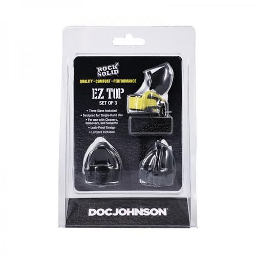 Rock Solid EZ Top is your new nightstand necessity! These caps are designed for one-handed use so you don't have to slow down when the moment is right. They're completely leak-proof, so nothing will come out unless you're ready for it. This set includes 3 sizes for all of your needs.