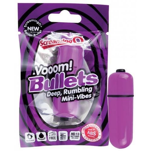 Enjoy powerfully deep sensations in a compact, on the go size with Screaming O Vooom Bullets, the latest mini vibe innovation from The Screaming O! Featuring a brand new low frequency motor, Vooom Bullets buzz with a one of a kind rumbling vibration you can feel from the inside and are encased in a 100% waterproof shell, making it easy to enjoy intensely stimulating sensations in the bath or shower!