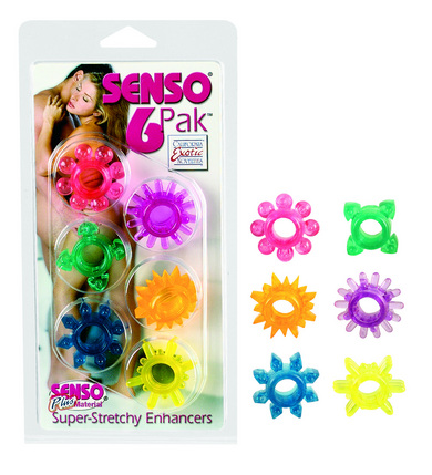 6 Senso Plus super stretchy enhancers for longer lasting erections. Designed for partner stimulation.