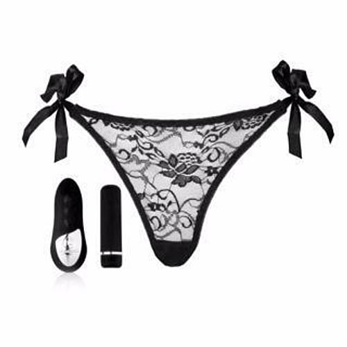 Sensuelle Pleasure Panty Black Remote Control. Exclusive only. 15 functions. USB Rechargeable Bullet. USB Rechargeable Remote Control. Remote vibrates in sync with bullet. USB charge. Charge time 2 hours. Running time 25 to 50 minutes. ABS bullet coated in Medical grade silicone. 100% waterproof submersible. White cotton panty with lace detail and side ties. One size fits most. Amazingly powerful, yet discreet and quiet. Wall charger not included. USB cable only.1 year warranty. Toy bag included.