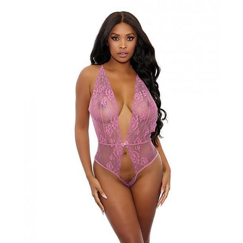 Sheer Lace Open Pink Teddy. From Popsi Lingerie.