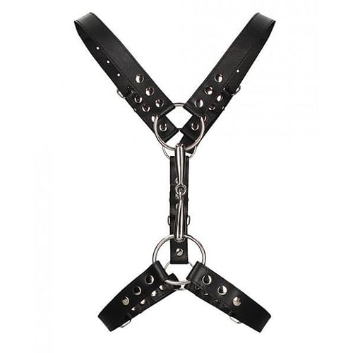 The harness features 2 metal O-rings that are perfect for attaching chains, leads and other BDSM accessories. Totally adjustable at the neck, waist and chest for a perfect fit, this harness moves seamlessly from everyday wear to private parties of the very naked variety.