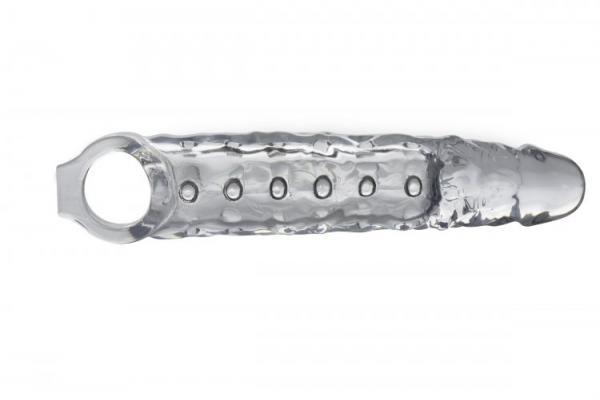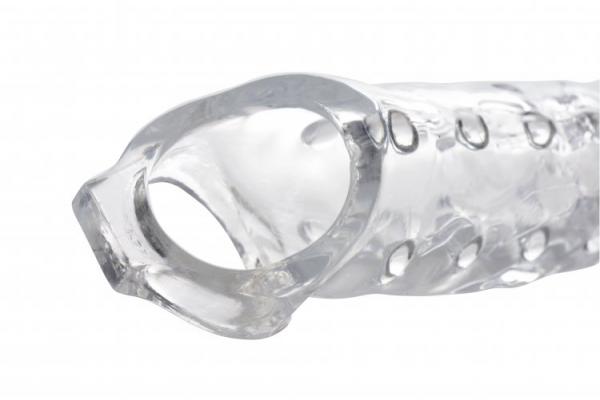 Wrap the strap around your scrotum for more support, security, and sensitivity! Gain three inches of solid length and about an inch of girth with this penis enhancing sleeve! The firm, but flexible material feels realistic, with a bold head and bulging veins all down the shaft. Just lube up and shove your dick inside to give your partner a new sensation to try out during sex!
