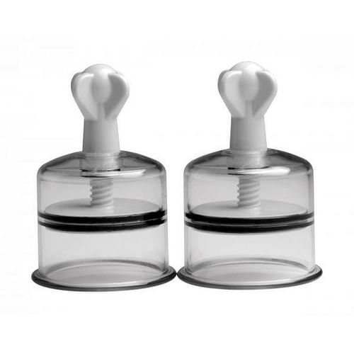 Simple, but remarkably powerful, these suckers can be used anywhere on your body where you would like to experience increased sensitivity and temporary enlargement, but they are especially effective on your nipples! With a wider cylinder than others, this set will pull your entire areola and surrounding flesh into its tight pressure as you twist. Forget about complicated pumps and accessories, these silent and discreet nipple suckers make for convenient, unique fun that can easily be taken to your partners house or on a trip! Internal lubrication creates smooth movement and a strong seal.