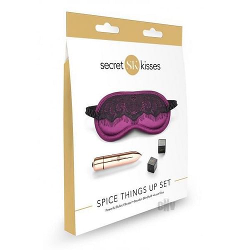 Take your intimate play to the next level with a kit of essentials that are sure to spice things up in bed. Featuring a powerful bullet vibrator, blindfold, and a set of dice to guide you through fun foreplay, this set is perfect for a couple`s intimate date night. The blindfold will allow you to experiment with sensation play, and culminate the experience with powerful orgasms from the included vibe.