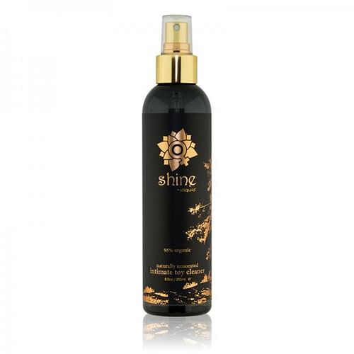 Sliquid Shine Organic Toy Cleaner 8.5 fluid ounces. Sliquid Shine organic intimate toy cleaner is infused with body and nature safe cleansing agents like tea tree oil and castor oil, which have natural anti-bacterial and anti-fungal properties. This non-foaming toy cleaner does not contain glycerine, parabens, alcohol, triclosan or other harsh chemicals. To use, simply spray Shine directly on to area to be cleaned. Rinse with water (where applicable), then wipe dry with a clean cloth, and store.