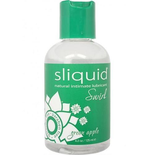 Swirl is a group of flavored water based lubricants, all glycerin and paraben free. Sliquid currently offers four flavors; Cherry Vanilla, Pina Colada, Green Apple Tart, and Blue Raspberry. New flavor formulations are always under way. All Swirl formulations start with our Original H2O water based lubricant, and add flavoring and a hint of Aspartame to sweeten. Our flavors are subtle, and are intended to enhance your taste, not disguise. All Sliquid products are formulated by sensitive women, for sensible women, and will never cause yeast infections or UTI’s. * Lightly flavored to enhance taste * 100% Vegan friendly * Water-based and water soluble * Glycerin free and paraben free * Latex, rubber, and plastic friendly * Non-toxic, non-staining, & hypoallergenic * Uniquely blended to match your body’s own natural lubrication * Formulated to last longer than most Hollywood marriages!