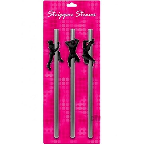 Each package contains 3 silver colored straws with plastic figurines of sexy strippers attached to each one! Strippers can be moved up and down their poles to accommodate various cup sizes. Straws are 8.5 inches tall.