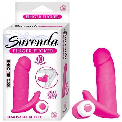 10 functions. 100% Silicone. Removable bullet vibrator. Waterproof vibrations. Phthalates free, RoHS compliant material Silicone finger sleeve, ABS plastic bullet vibrator. Total length 3.5 inches, insertable length 3.25 inches, diameter 1 inch, circumference 3.125 inches. Bullet vibrator requires 3 LR44/AG13 batteries, included.