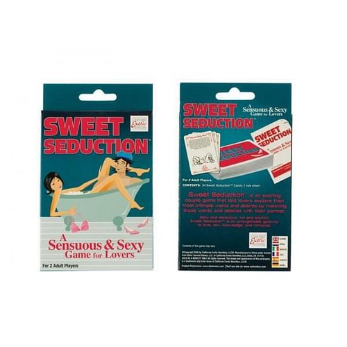Sexy and sensuous, fun and explicit, Sweet Seduction is an unforgettable couples game of love, sex, knowledge, and romance. For 2 adult players. Includes: 54 Sweet Seduction cards, rule sheet, and instructions.