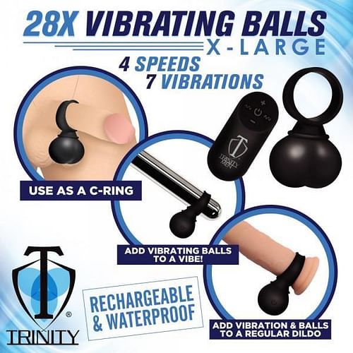 Add more fun to your play and get some vibrating balls to strap on to your toy or partner! These heavy balls are made of phthalate-free, premium grade silicone so they are body-safe and compatible with water-based lubricants. The plush, silky smooth design is also rated at IPX5 waterproof so you can enjoy them in the shower! The ring can be used either as a cock ring for your partner, or strapped around any dildo or vibrating able. Enjoy 4 speeds and 7 patterns of rumbling vibration that you control with the battery operated remote control. Wash with warm water and soap after use, then spray with a toy cleaner and wipe dry. Recharge the vibe using the USB cable provided. Add extra fun to your play with this pair of vibrating balls! You can use it on a dildo to add extra sensation and buzz every time the dildo thrusts. You can add it to a long able to add extra buzz against your perineum or labia. You can even use it as a cock ring with balls that buzz against your testes and your partner! Use with a little water-based lubricant to help slip it on and reduce friction, then explore alone or with a partner to add fun and enhance sex the next time you play! Measurements: 10.2 x 6.5 x 5.1 cm. Overall length: 4 inches, Inner diameter: 1.57 inches (40mm). Materials: Silicone, ABS plastic Color: Black Note: Remote distance of up to 32ft, requires 1xCR2032 battery (included). Key Features: Vibrating Balls: Enjoy using these balls to enhance a strap-on dildo, an able toy, a long vibrating toy, or even as a cock ring that stimulates both the wearer and their partner! Remote Controlled Powerful Vibration: Explore 4 speeds and 7 patterns of powerful vibration rumbling from these balls. Use the battery operated remote control to switch patterns and settings as much as you like from up to 32 feet away! Premium Silicone: These silky smooth, soft and plush balls are made of phthalate-free, premium silicone so they are body safe and best used with water-based lubricants. Waterproof and Rechargeable: Take these balls into the shower with you! They are rated to be IPX5 waterproof so they can withstand gentle sprays of water, but should not be submerged. After use, recharge the toy with the USB cable provided.