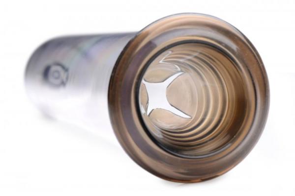 Get rock hard with a heavy-duty pumping system. Achieve an erection as impressive as the iconic drawings of Tom of Finland when you slip your penis into the silicone comfort sleeve of the cylinder, creating a strong seal with a bit of water-based lube if necessary. Snap the hose onto the vacuum lock top of the cylinder and squeeze the comfort grip handles to begin suction. Every squeeze will reflect on the pressure gauge, as well as in your penis as it becomes engorged. Measurements: Cylinder is 9.5 inches in total length with an inner diameter of 1.75 inches and an outer diameter of 2.25 inches. Hose is 14 inches in length. Material: Metal, silicone, rubber. Color: Clear. Note: Includes a free Tom of Finland Collector Card.
