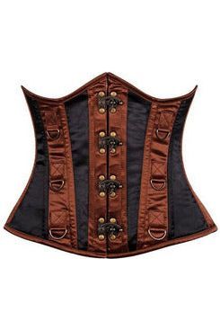 Top Drawer Black & Brown Steel Boned Underbust Corset