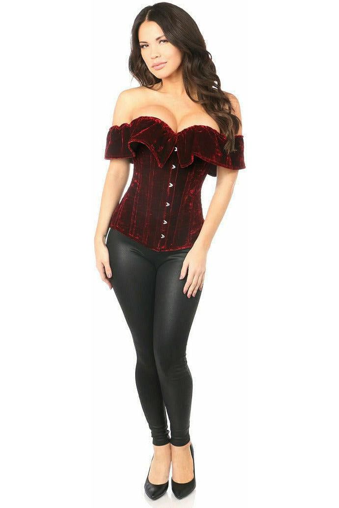 Top Drawer Dark Red Velvet Off-The-Shoulder Steel Boned Corset