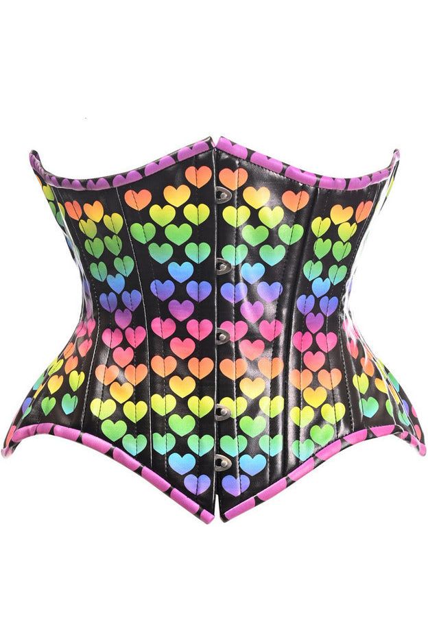 Top Drawer Rainbow Hearts Double Steel Boned Curvy Cut Underbust Cincher Corset