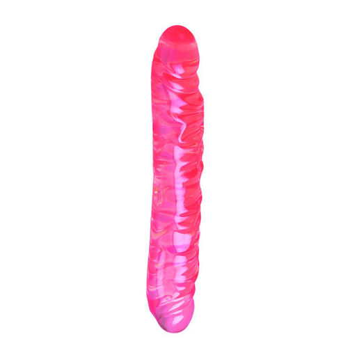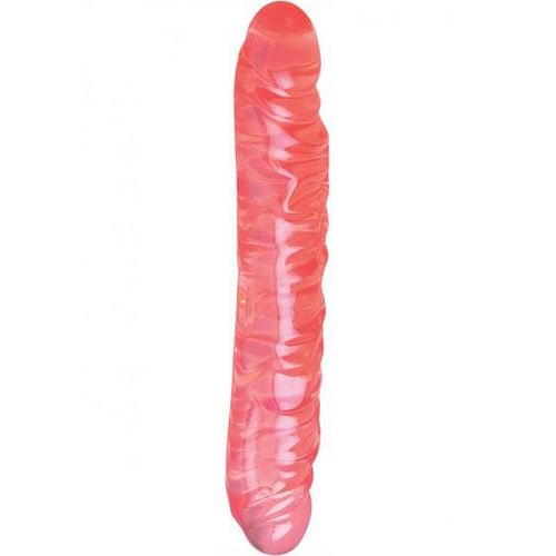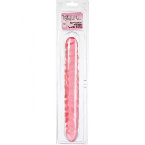 12 inch translucent pink jelly double dong with a thick veined texture. 1.5 inches wide with a 5 inch circumference.