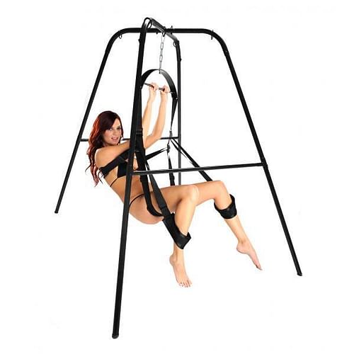 Easy to assemble, you can be ready to hang your swing in less than 10 minutes, and then disassemble after the fun for easy storage. This sturdy stand holds up to 400 pounds and is compatible with the Trinity 360 Sex Swing and most other swings.  Additional shipping may apply.