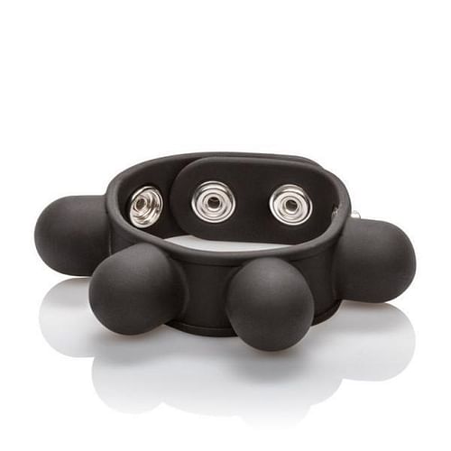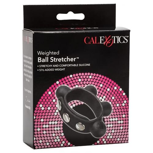 Harness the full potential of your manhood while experiencing extreme pleasure. The Weighted Ball Stretcher is designed with smooth and seamless silicone for comfortable constriction that will leave you begging for more.Three snaps inlaid in ultra stretchy, powder soft silicone provide fully customizable support. The four heavy duty weights are the ultimate scrotum stretching hardware. Embedded into the silicone and wrapped around the ring to evenly distribute the 2 ounces of total stretching power, your comfort and pleasure take the front seat. As a solid one piece design, there are no bulky attachments to get in the way. Stretch your parts and your playtime while feeling the perfect amount of swing.