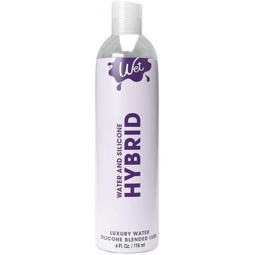 Wet Hybrid Water/Silicone Personal Lubricant 4 fluid ounces. Experience the best of both worlds with a silkiness of Silicone that easily washes off like water based lubes Superior feel and duration compared to water based lubricants. Hybrid Lubricant is the perfect mixture of Water and Silicone bases, ensuring that luxurious, silky, and long lasting glide on your skin. Developed and tested to the highest quality standards, this formula is a must for anyone who is looking for the best of both worlds; merging the superior longevity of Silicone with the silky smooth glide of Water based lubricants. Our hypoallergenic formula is compatible with natural rubber latex and polyisoprene condoms, as well as being glycerin and paraben free. Hybrid allows for the luxurious sensations to be taken to new heights as it safe for use with most adult toys, allowing for your only limit to be your imagination. Features: Water and Silicone Blend. Glycerin free and paraben free. Colorless and Odorless. Hypoallergenic. Doctor recommended. FDA Cleared 510K Medical Device. Safe with most adult toys. Usage and tips: if you had gold, you could keep it locked in a safe. Thankfully, Hybrid does not need to be locked away and saved to be enjoyed. Apply liberally to intimate areas, get creative, before foreplay or intercourse for enhanced intimacy and pleasure. Ingredients: Propylene Glycol, Water/Eau, Dimethicone, Cyclopentasiloxane, PEG/PPG Dimethicone, Caprylhydroxamic Acid, 1,2-Hexanediol, Propanediol, Sodium Polyacrylate, Trideceth-6, Hydroxyethylcellulose. Categories: Lubricants, Water Based Lubricants, Silicone Based Lubricants. 2024.