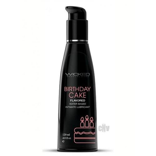 It`s our birthday, but we`re giving you one more reason to lick your lips! Celebrating 10 years of making playtime even tastier with our water-based Birthday Cake. Kissable, lickable, and delicious, Wicked Aqua Birthday Cake personal lubricant adds subtle and delicious natural flavors to enhance oral pleasures.Light and silky, this water-based formula is the perfect sensual combination of an elegant lubricant and a flavor sensation. Never sticky and without an aftertaste, Wicked Aqua Birthday Cake satisfies your sweet tooth and your intimate desires all in one amazing pleasure product. Oral sex never tasted so good. Whether you are giving or receiving, our flavors will give you a new sexy confidence. Long-Lasting Latex Friendly Paraben Free Never Sticky No Aftertaste Enhanced with Olive Leaf Extract Vegan- No Animal By-products or testing