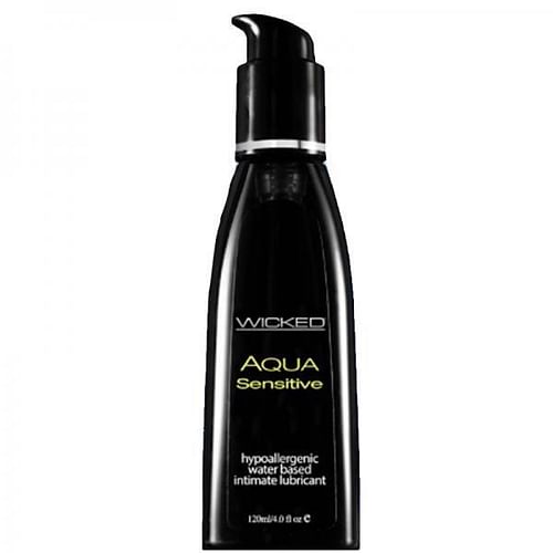 Wicked Aqua Sensitive Lube lets you indulge yourself and your most delicate areas with this incredibly smooth and satiny, hypoallergenic lubricant. The luxurious Glycerin and Paraben Free formula is specifically designed for sensitive skin to heighten sensation and arouse satisfaction. Enhanced with skin nurturing Aloe and Olive extracts, as well as Vitamin E, Aqua Sensitive will caress to new levels of pleasure.