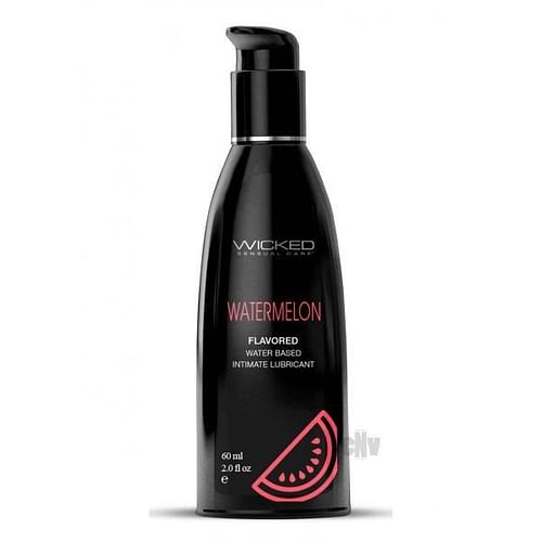 Bring summertime into your sex life! Kissable, clickable, and delicious, Wicked Aqua Watermelon personal lubricant adds subtle and delicious natural flavors to enhance oral pleasures. Light and silky, this water-based formula is the perfect sensual combination of an elegant lubricant and a flavor sensation. Never sticky and without an aftertaste, Wicked Aqua Watermelon satisfies your sweet tooth and your intimate desires all in one amazing pleasure product. Oral sex never tasted so good. Whether you are giving or receiving, our flavors will give you a new sexy confidence.