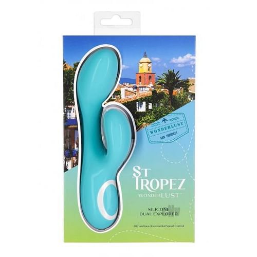 Your intimate adventure awaits you with the Wonderlust St. Tropez Silicone Dual Explorer. It’s the ultimate travel guide to blissful tranquility with its sensually soft silicone in a turquoise hue inspired by the sun kissed shores of the Mediterranean. The versatile range of 20 functions means that you can find the exact stimulation you need with endless possibilities. Incremental speed control functions let you experience the full range of pleasure that will transport you to a state of pure serenity. The favourite memory function allows you to save your preferences, so you don’t have to worry about cycling through them all. Travel lock features ensure that you can pack it discreetly in your luggage no matter where you go. It’s USB rechargeable so you can charge and play easily. Made of body safe materials, it’s also water resistant so you can get a little wet and wild on your intimate adventure. Remember to clean your toy before and after use with a toy cleaner.