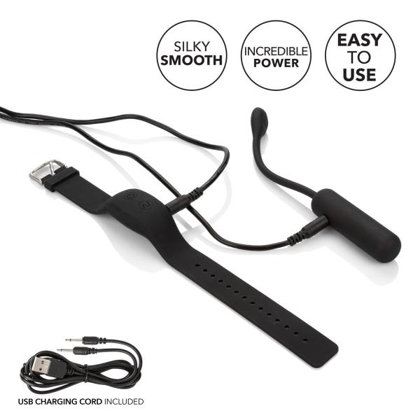 Features: compact and discreet waterproof wristband remote control, use alone or with a partner 12 intense functions of vibration, pulsation and escalation. Waterproof, ultra slender stimulator may be used independently of remote. Easy retrieval cord. State of the art memory chip resumes on last function used.