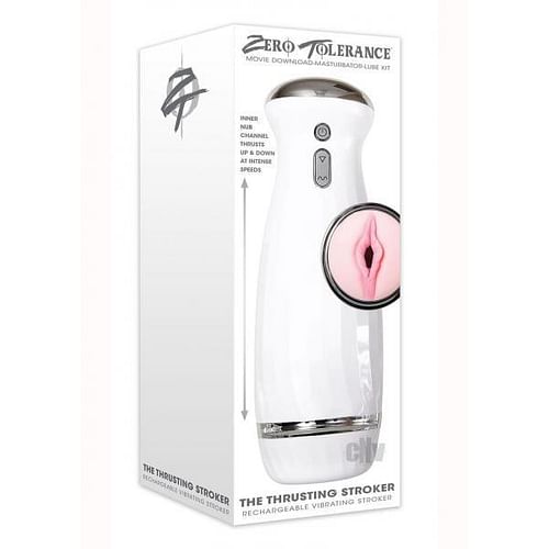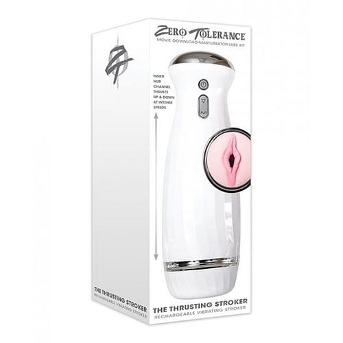 Zero Tolerance Toys The Thrusting Stroker from Evolved Novelties. Zero Tolerance is proud to unveil this powerful thrusting stroker that feels like the real thing because its motor seem to have a mind of its own. The life like vaginal entry gives way to erotic soft and stretchy pleasure nubs that massage and tickle as you slip inside. Then choose from five different thrusting speeds with five different intensities each that literally stroke up and down with the power of European technology. Kick start your fantasy with a free adult movie download and use plenty of lubricant for best result. The entire stroker assembly comes apart and clean up is easy with Zero Tolerance Masturbator Cleaner and a warm water rinse. Rechargeable via USB. Size 11 inches in height by 3.86 inches in depth by 3.86 inches in width. Made using body sae materials Thermoplastic Elastomers TPE stroker, ABS Plastic case. 5 years warranty. 28.4 ounces bulk weight.