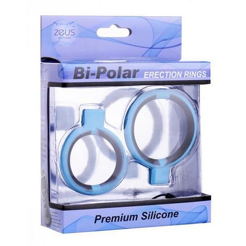 These cock rings pack some serious zing! Conductive silicone makes these bi-polar cock rings an exciting addition to any electro toolbox. Simply place the rings over your rod and connect them to your Zeus Powerbox, sold separately. Once the rings are on and hooked up, select your intensity level. A tantalizing current will flow from one ring and back, exciting the nerves along the way! The silicone material is non-porous, allergy safe, and easy to clean. Compatible with all Zeus Powerboxes and handheld systems, sold separately. Measurements small cock ring 1.5 inches in diameter. Large cock ring 1.9 inches in diameter. Material Silicone. Color Blue.